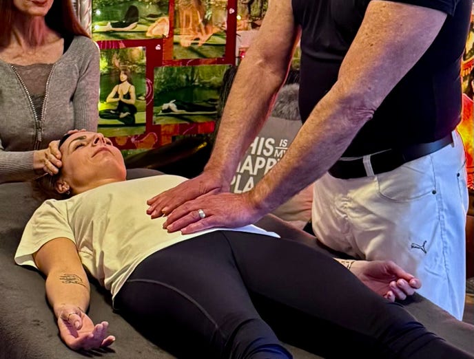 Das besondere Erlebnis, von vier Händen zugleich berührt zu werden und doppelten Energienachschub zu erhalten. Sich in der Berührung verlieren und wieder aufgefangen zu werden. Zwei kompetente Reiki Therapeuten behandeln Sie gemeinsam in harmonischer Abstimmung. Energie Pur !